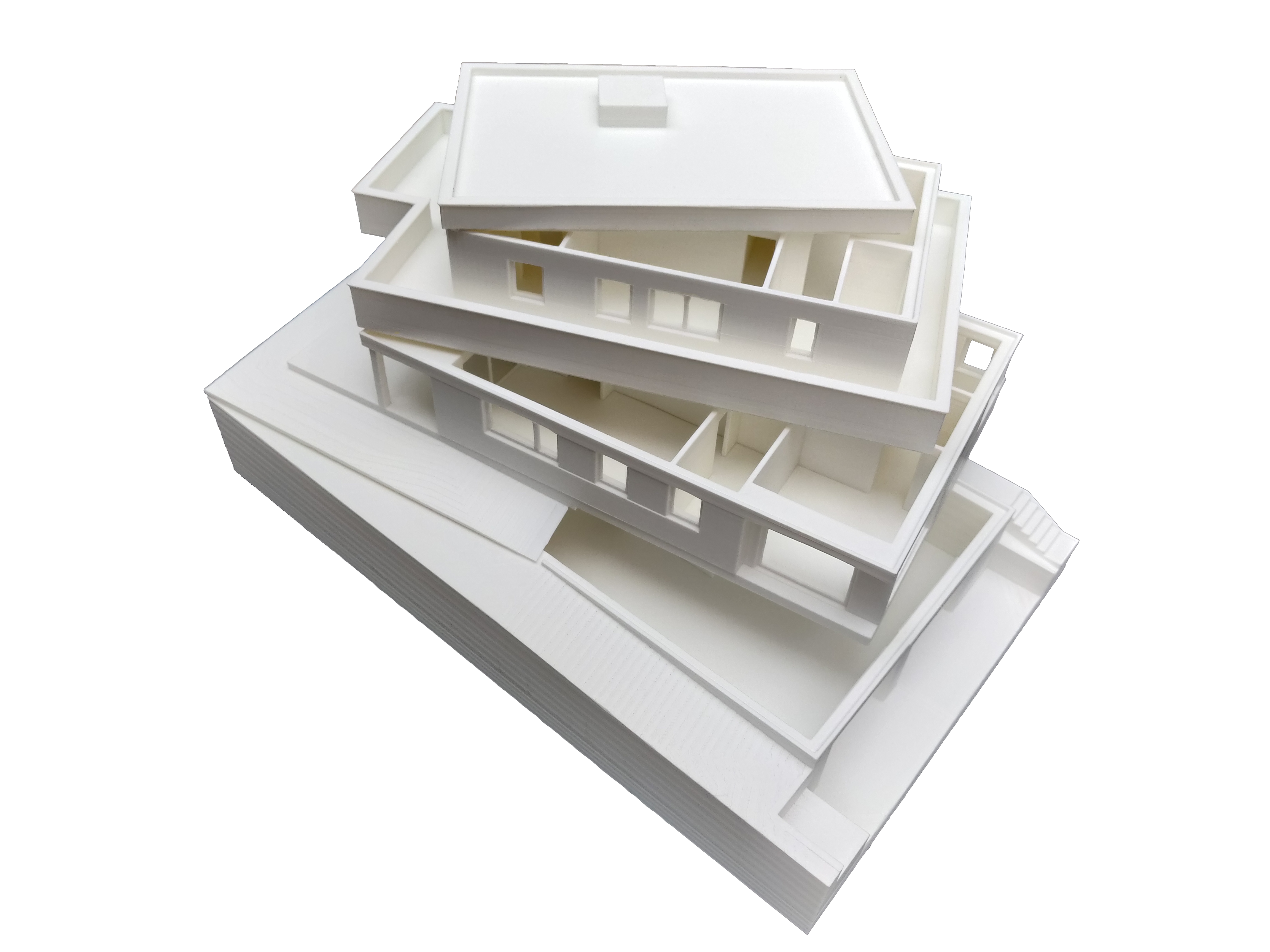 Maquette d'une maison individuel modulaire emboitable à l'échelle 1/100ème.