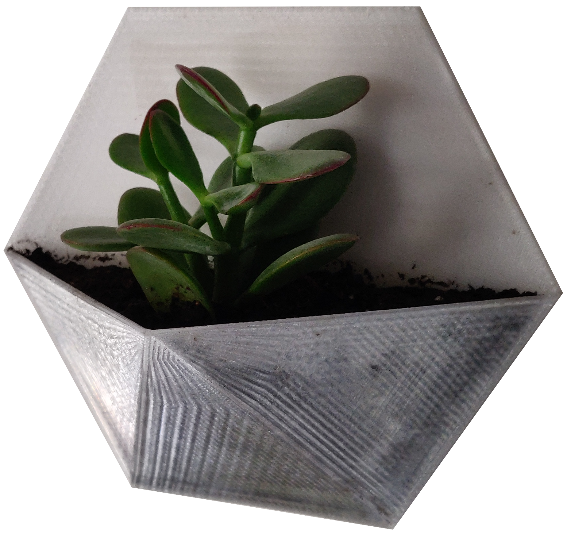 Utilisation de filament transparent pour un pot de fleur décoratif murale.